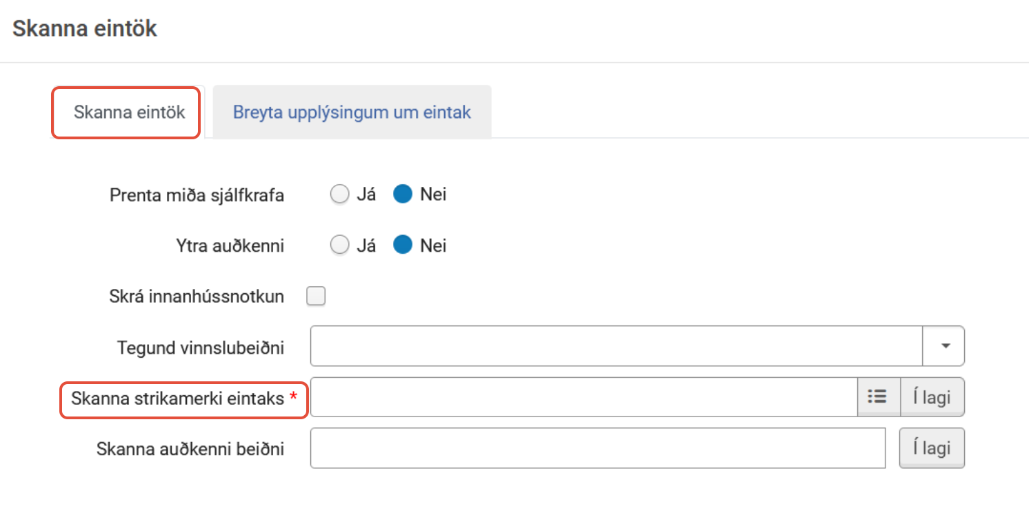 - Ath: Ekki skal vera hakað við "Skrá innanhússnotkun"