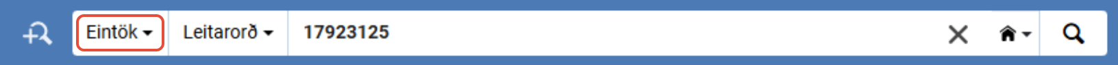 Leita skal undir „Eintök“. Hægt er að leita að strikamerkinu eða slá inn titli. Ef titillinn er notaður sem leitarorð þá þarf að þrengja niðurstöðurnar eftir réttu bókasafni.