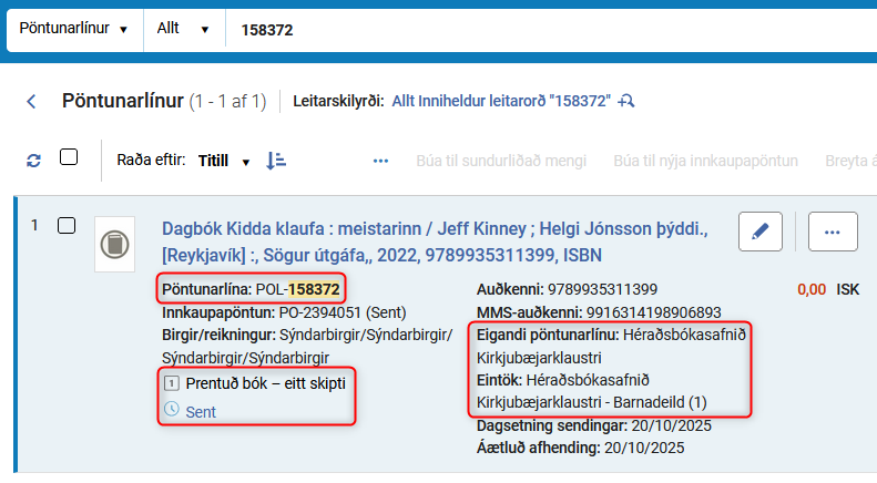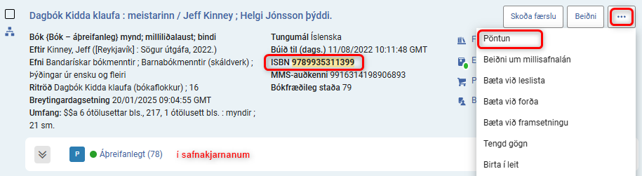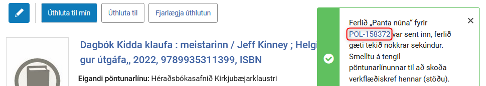 - Leitarorð á að vera ISBN númer þess titils sem á að panta.