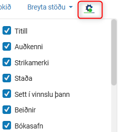 Smella á tannhjólið hægra megin á skjánum. Fara niður fyrir dálka sem eru virkir.