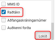 Haka við „Raðtákn“ og smella á „Lokið“. Athugið: það má alls ekki velja Raðtákn eintaks.