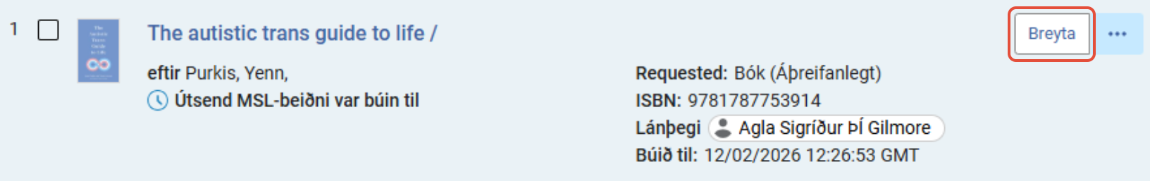 - Skref 3. Senda millisafnalánabeiðni áfram á bókasafn