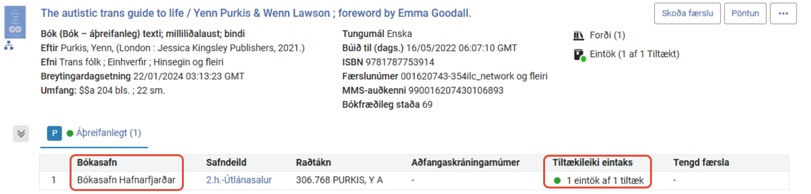 - Skref 2. Skoða hvaða bókasöfn eiga tiltækt eintak