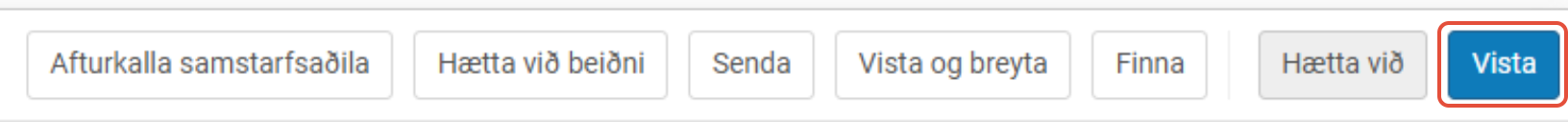 Þegar búið er að setja inn samstarfsaðila er smellt á „Vista“.