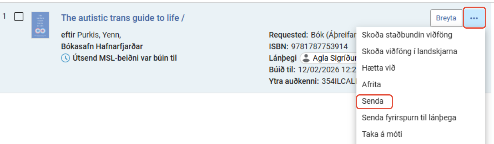 - Skref 1. Skoða millisafnalánabeiðnir sem þarf að senda til samstarfssafns