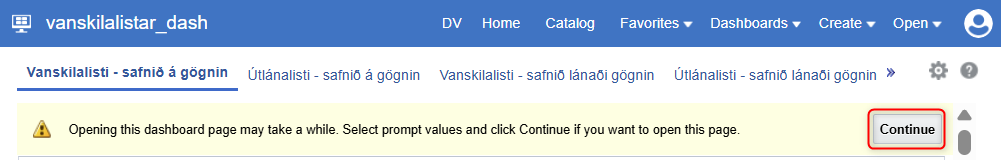 Ef þessi skilaboð koma upp þegar búið er að opna valinn lista þarf að smella á Continue: